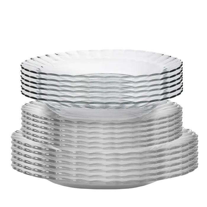 Elevate everyday dining with the timeless elegance of the Picardie Clear Glass Plate Set. This 18-piece collection combines classic design with everyday durability, making it ideal for both casual meals and special occasions.