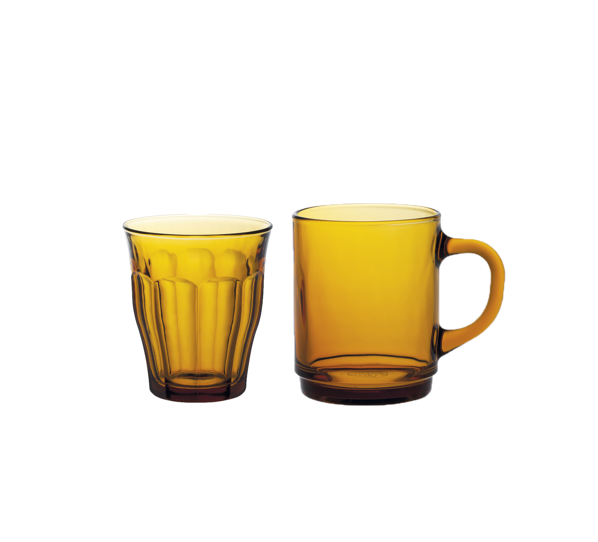 Versailles Mug & Picardie Tumbler Set – 12 Piece Matching Color Collection Amber